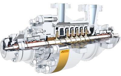 JHD系列泵為單殼體、徑向剖分、節段式、兩端支承臥式多級離心泵。符合API610-11th標準。進出口法蘭尺寸滿足ANSI或ISO標準。密封腔的設計符合ISO21049/API682密封標準,沖洗、冷...